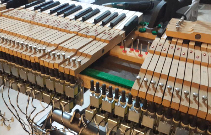 En las instalaciones en donde llevamos la automatizacion de pianos tenemos que desbaratar el piano para hacerlo un robot. Son diferentes técnicas y detalles las que se emplean ya que cada marca y modelo de piano son diferentes. Nuestros técnicos son altamente capacitados en el extranjero para resolver cualquier problema que se presente en la instalación.